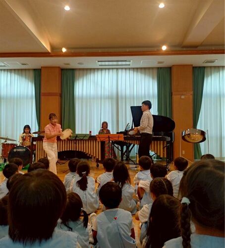 9/9.に 浜松海の星幼稚園さまで コンサートをして参りました。 ゆかいなリズムの仲間たちとしては ほんと久しぶり。 11/10.の自主公演以来の本番です。 昨年、浜松市私立幼稚園協会さまから ご依頼を受けて、 永年勤続表彰式の中で 演奏させていただきました…