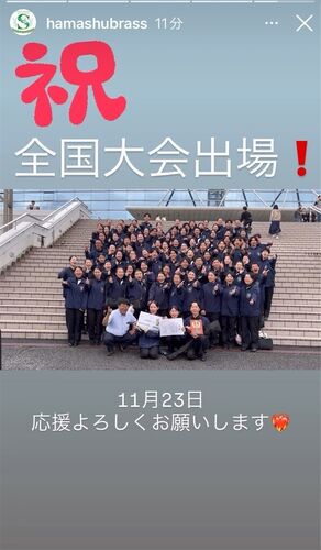 先ほど無事に終わりました。 私は今日は観覧席でのんびりと^_^ 出演校はこちら♀️ グランプリ 高校→聖星高校 中学→富塚 指揮者賞→松下法恵先生 が受賞されました おめでとうございます! さて、私の出身校 浜名高校吹奏楽部の 同級生グループLINEというもの…